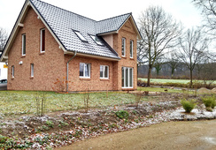 Anschließend wurde das Mauerwerk mit Steinen von Röben in "Moorbrand lehm-bunt" verblendet.